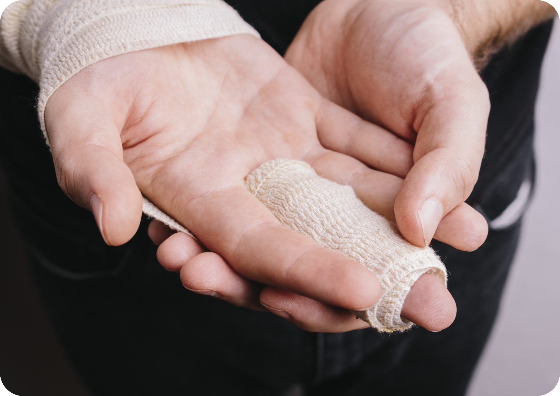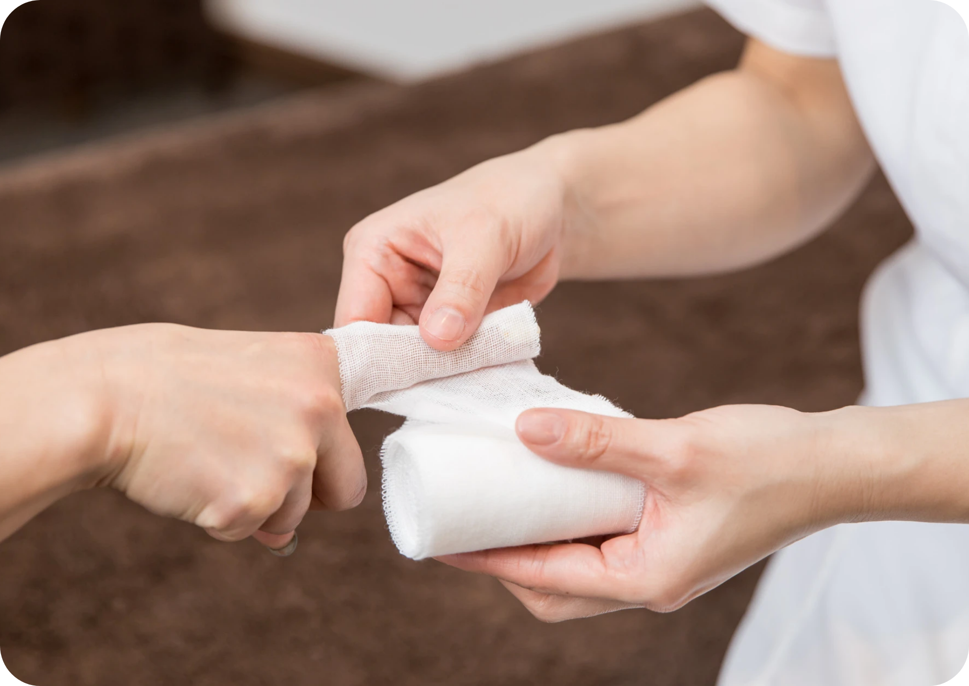 圧迫と挙上は、血流の改善と腫れの軽減に寄与します。突き指をした指を心臓よりも高く保ちながら、包帯やテーピングを使って軽く圧迫します。これにより、組織への過剰な血液の流れを防ぎます。