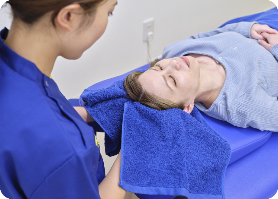 当グループでは、スパのように頭を直接揉んだり触れるような施術ではなく、重たい頭を支えている首の緊張を全身から緩ませていきます。 ですから、直接触れないほど痛む方でも施術を受けていただけます。 ※ひどい頭痛の方には、痛みを取り除くために機器を患部や首に使用する場合もあります。 首がしっかり頭部を支えられるよう姿勢改善を目指して、骨盤・骨格のゆがみの矯正+首肩周辺の緊張を緩ませる施術を、「お客様の負担が少ないこと」を心がけた手技でおこないます。
