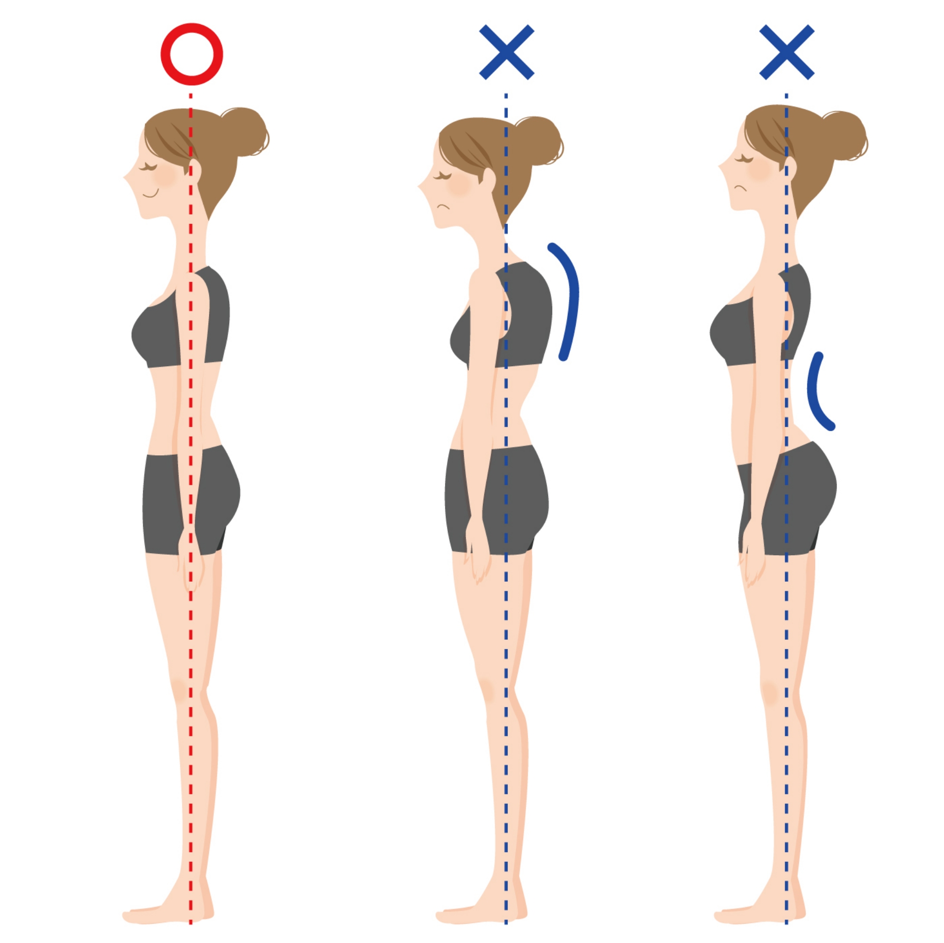 猫背は、さまざまな「不調の原因」と言われています。 猫背は、本来あるべき人間の身体の形ではありません。 間違った姿勢であることから、内臓や背骨を圧迫したり、背中の丸みから呼吸がしっかりできないようになってしまいます。 すると、腸を圧迫することから便秘、胃腸機能の低下、背骨の歪みから、背骨の回りにある自律神経機能を低下して、精神的な病の原因になったりもします。 呼吸が浅くなると、酸素や栄養が体に十分にいきわたりません。 すると、筋肉に十分に酸素が回らず、肩こり、腰痛、頭痛になりやすくなったり、リンパの流れの悪さから風邪をひきやすい、疲労体質になったり、太ってしまったりすることもあります。 他にも、背中の丸みから、顔のたるみ、ほうれい線の原因となることもあり、女性には大敵の姿勢になります。