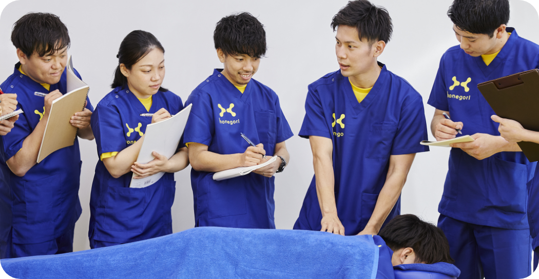 毎日、本社で社員研修を行い、技術・知識・在り方を磨き続けています。常に最新の知識と技術を学び、成長し続ける文化が根付いています。未来の施術家やスポーツ選手を育てる場として、地域の人材育成にも貢献します。