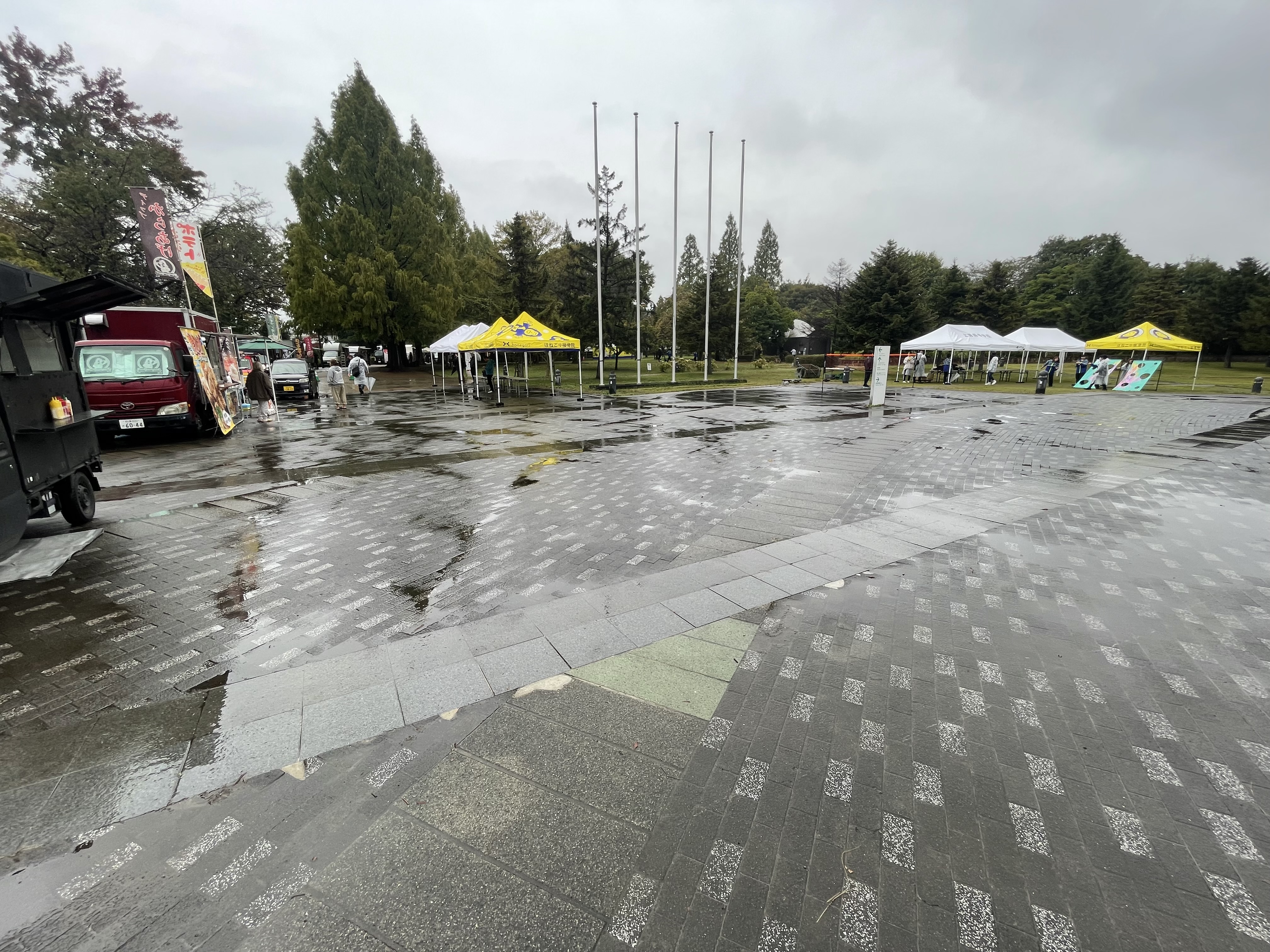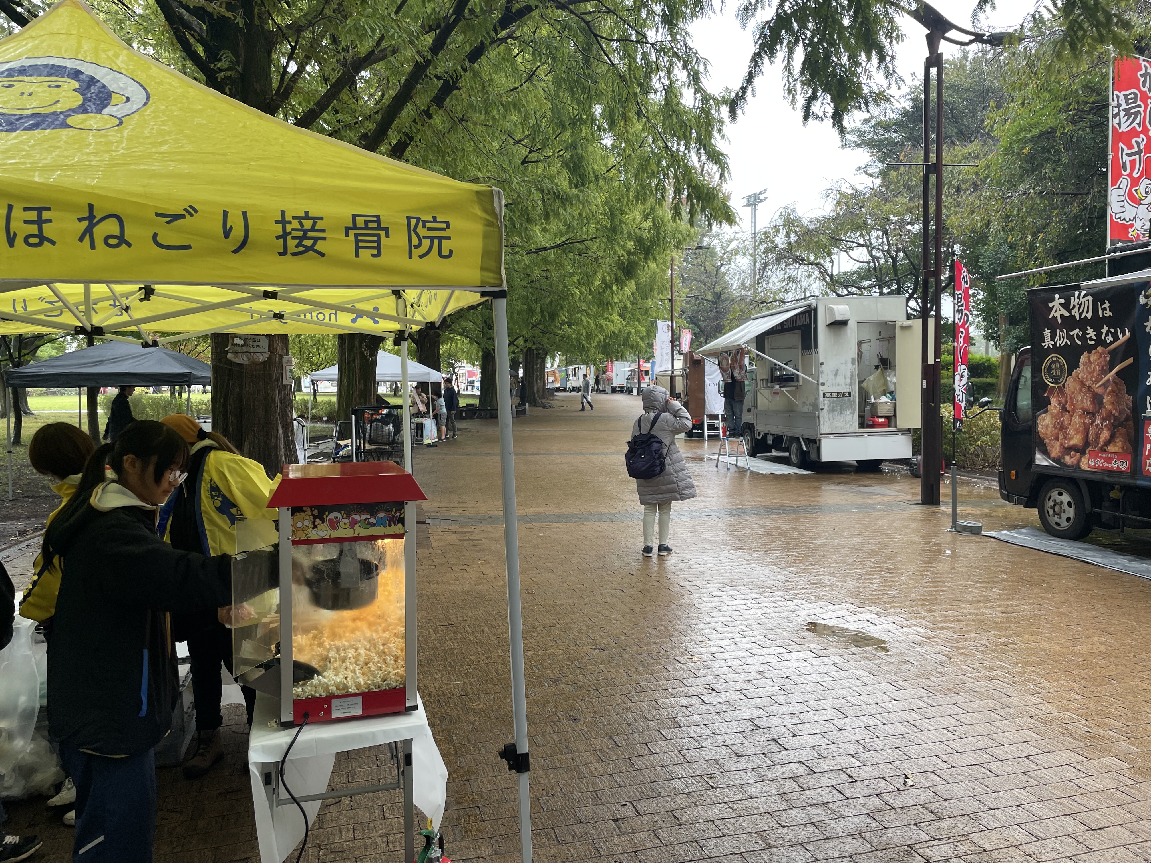 午前中に予定されていた吹奏楽の演奏は残念ながら中止となりましたが、それ以外のイベントは小雨を吹き飛ばすくらいの熱気で準備万端です。