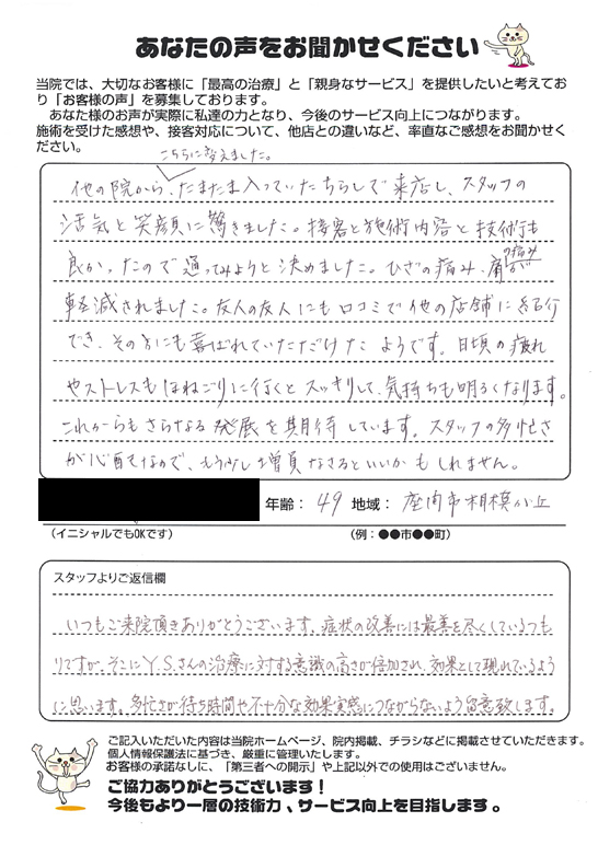 • 座間市 40代女性 ひざの痛み・肩の痛み