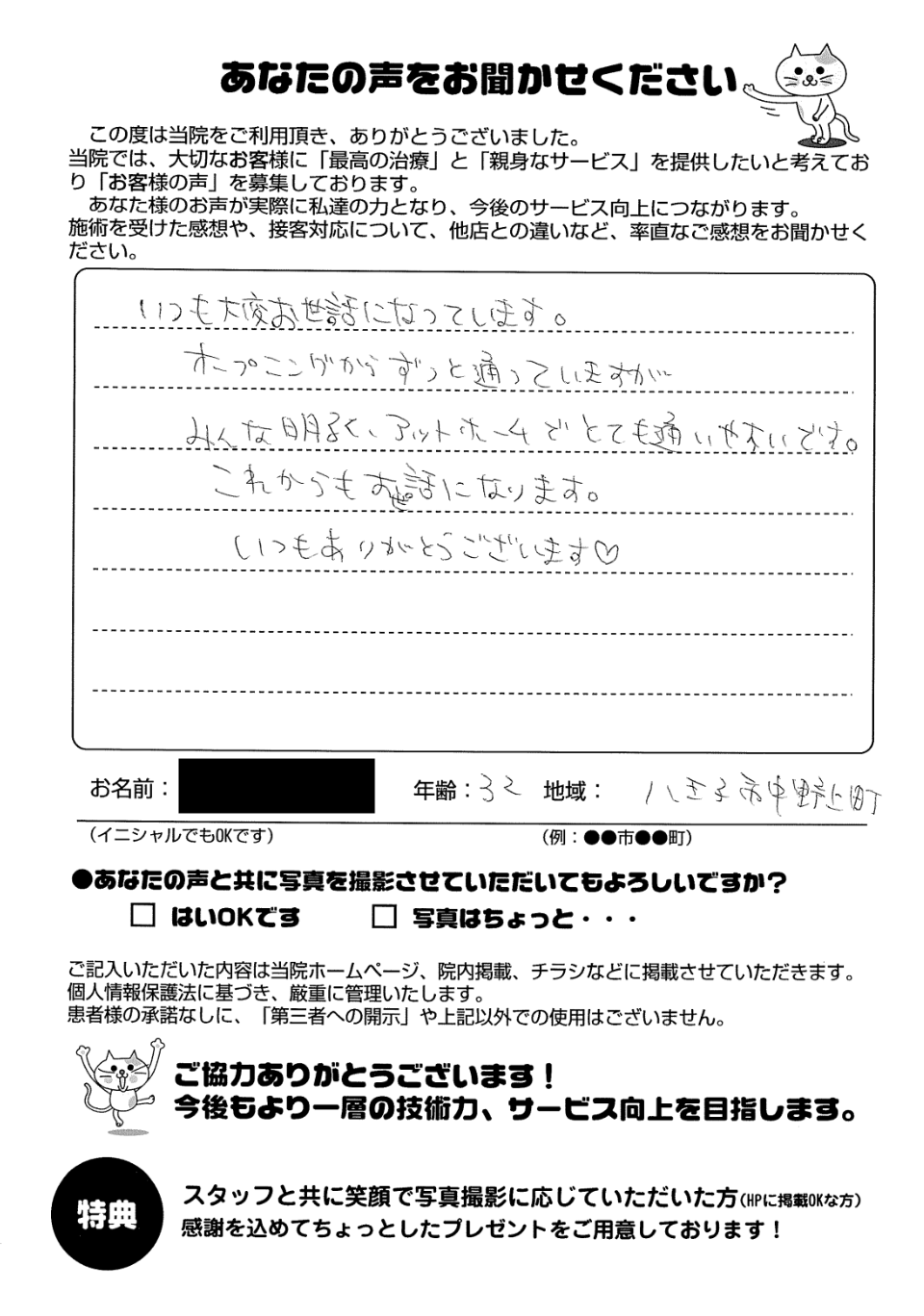 以前、他の店でも施術してもらってましたが、こちらの方が息子と安心して来れると思います。