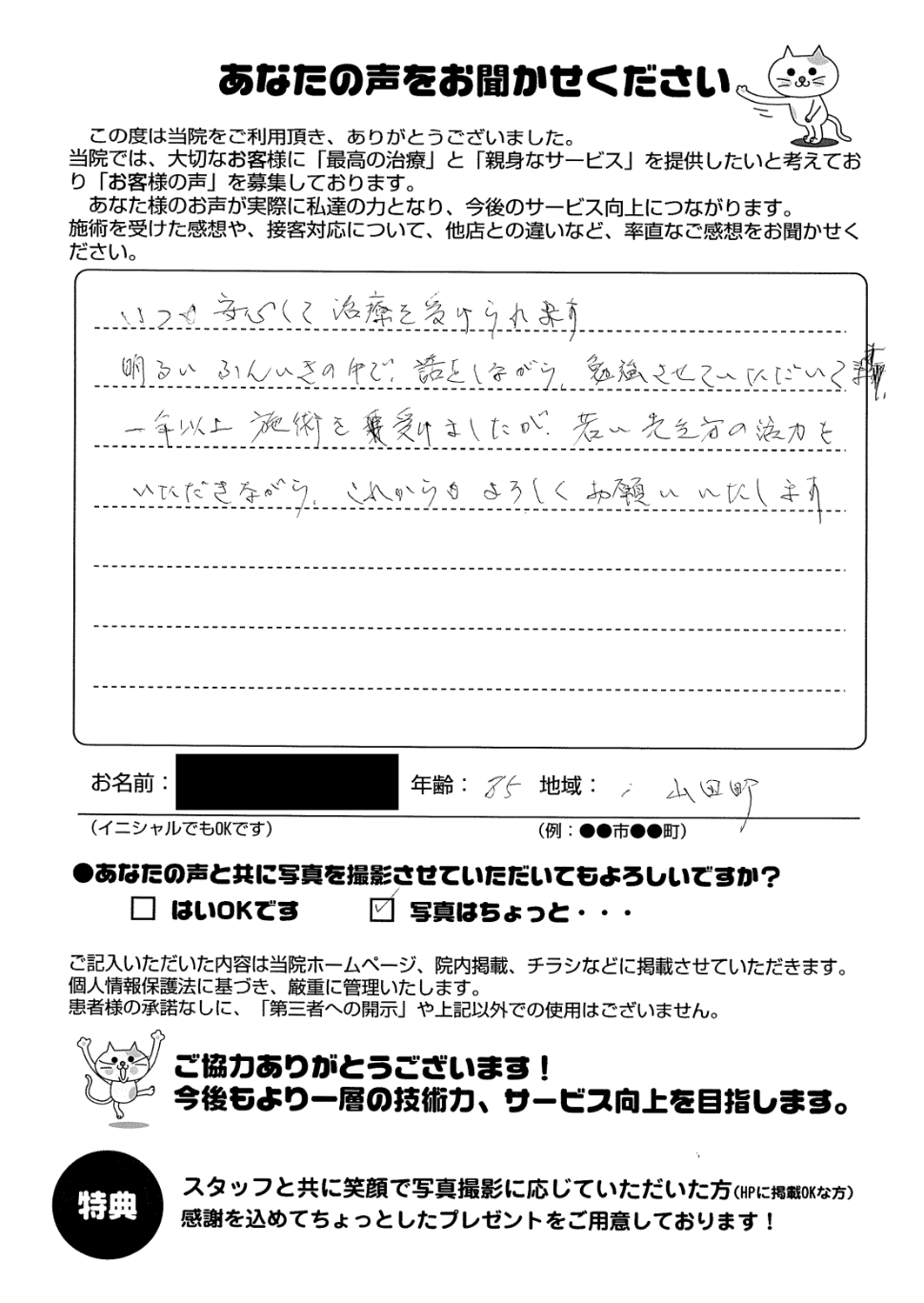 私だけではなく、スタッフ皆さんが息子のことをかわいがってくれて、安心して施術を受けられます。