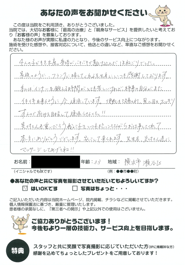 4人の子どもを出産。身体がバキバキで駆け込んだほねごりでした。